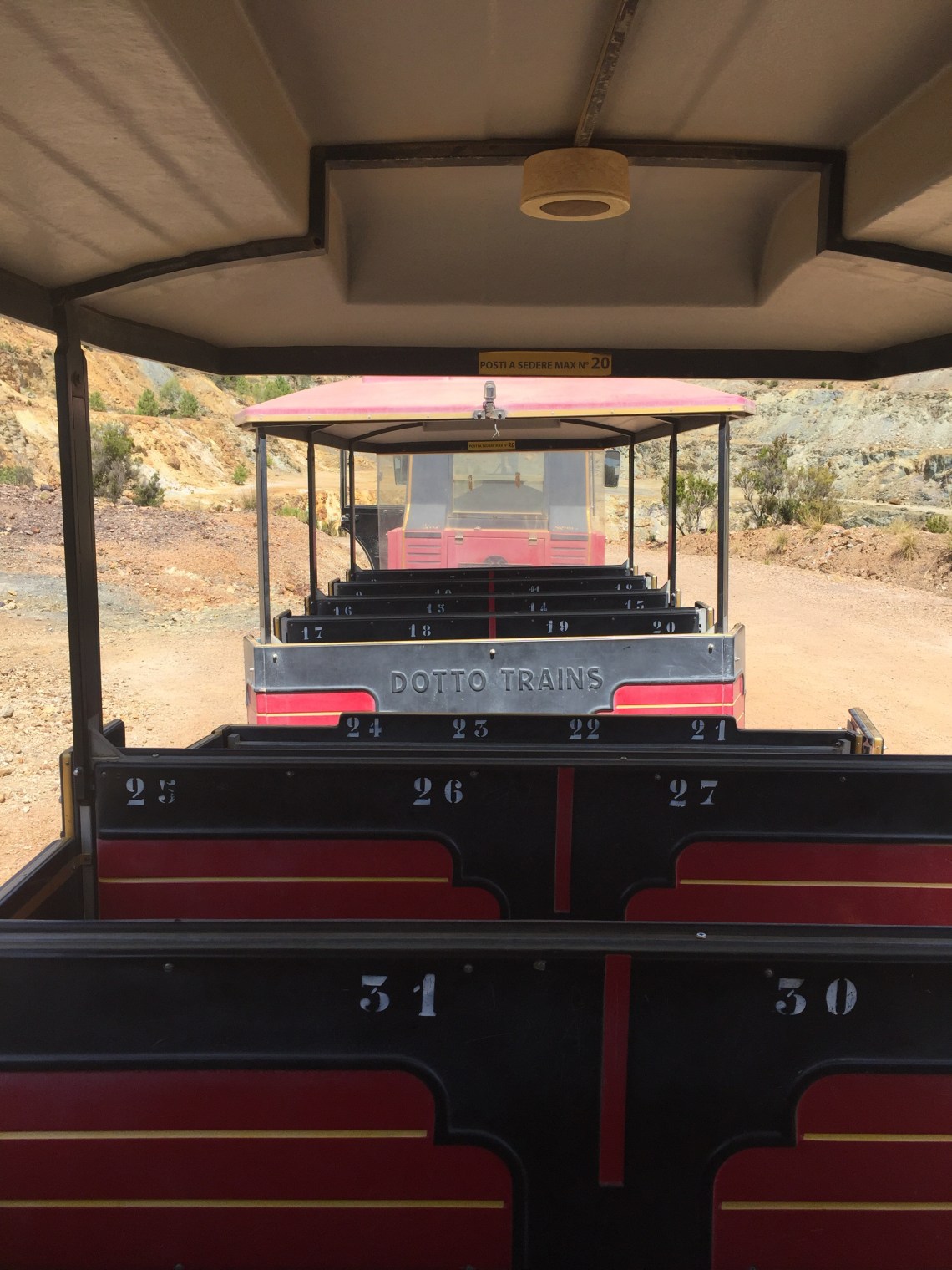 Die Gruppenrunde wurde von Matteo direkt in die Höllenbruthöhle gezogen. Und zwar im wahrsten Sinne des Wortes "gezogen" – durch das historische Eisenerzabbaugebiet in Rio Marina. Duschen lohnte sich im Speziellen danach. Staubig, sandig und verschwitzt, eng an die Familie gekuschelt, tuckerte das Zuggerät mit passendem Namen Zeus gemächlich bergan. Vorbei an altem Abbaugerät und viel Glitzer (nein, kein Einhornpups).